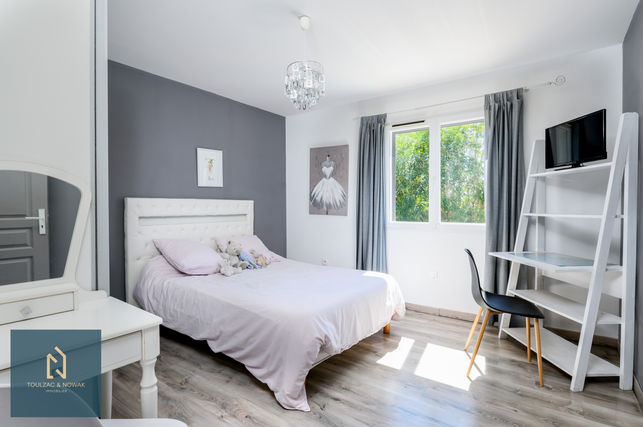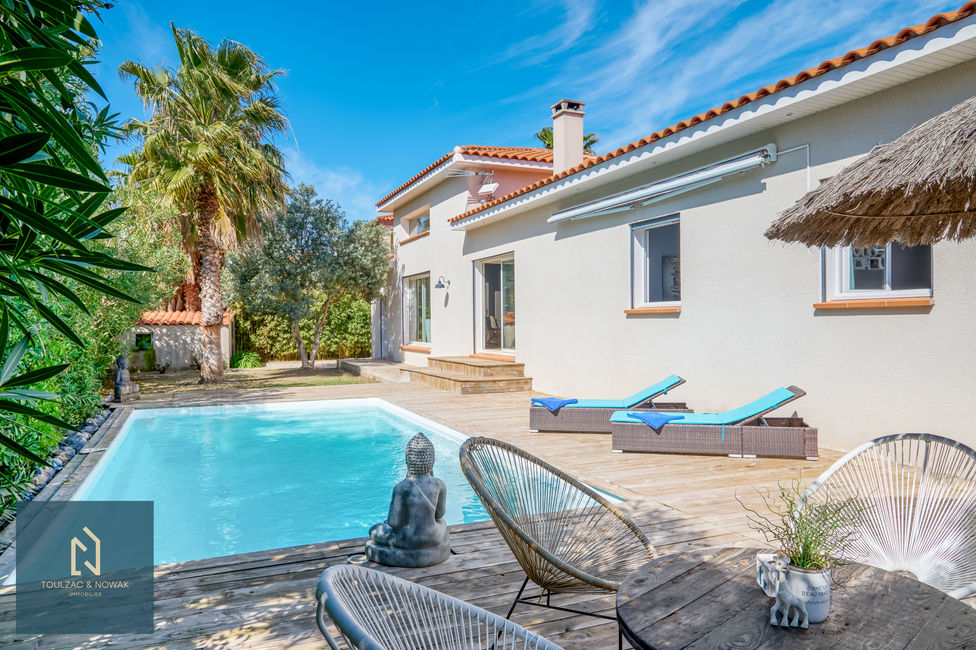 🇬🇧 On the CATALAN coast, near Perpignan, just 5km from PORT BARCARÈS, in the much sought-after village of TORREILLES. Shops and schools on foot. BUS stop at 100m. BEACH only 3000 meters away. Superb VILLA of approximately 160m2 on one level comprising an entrance hall, a huge living room of almost 75m2 with open, fitted and fully equipped kitchen, a pantry / laundry room, a separate toilet, a wooden TERRACE of 90m2. A corridor leads to a master suite with shower room and dressing room, 3 other bedrooms, a shower room with wc. SWIMMING POOL 8m x 4m. CASOT of 16m2. SUMMER KITCHEN by the pool. GARAGE. The whole on a LANDSCAPED and sported ground of 1040m2. No work needed. Villa BBC. PELLET STOVE and AIR CONDITIONING. Many other services.